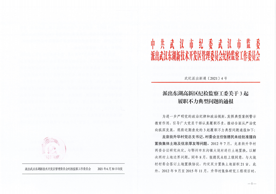 派出東湖高新區(qū)紀(jì)檢監(jiān)察工委關(guān)于3起履職不力典型問題的通報