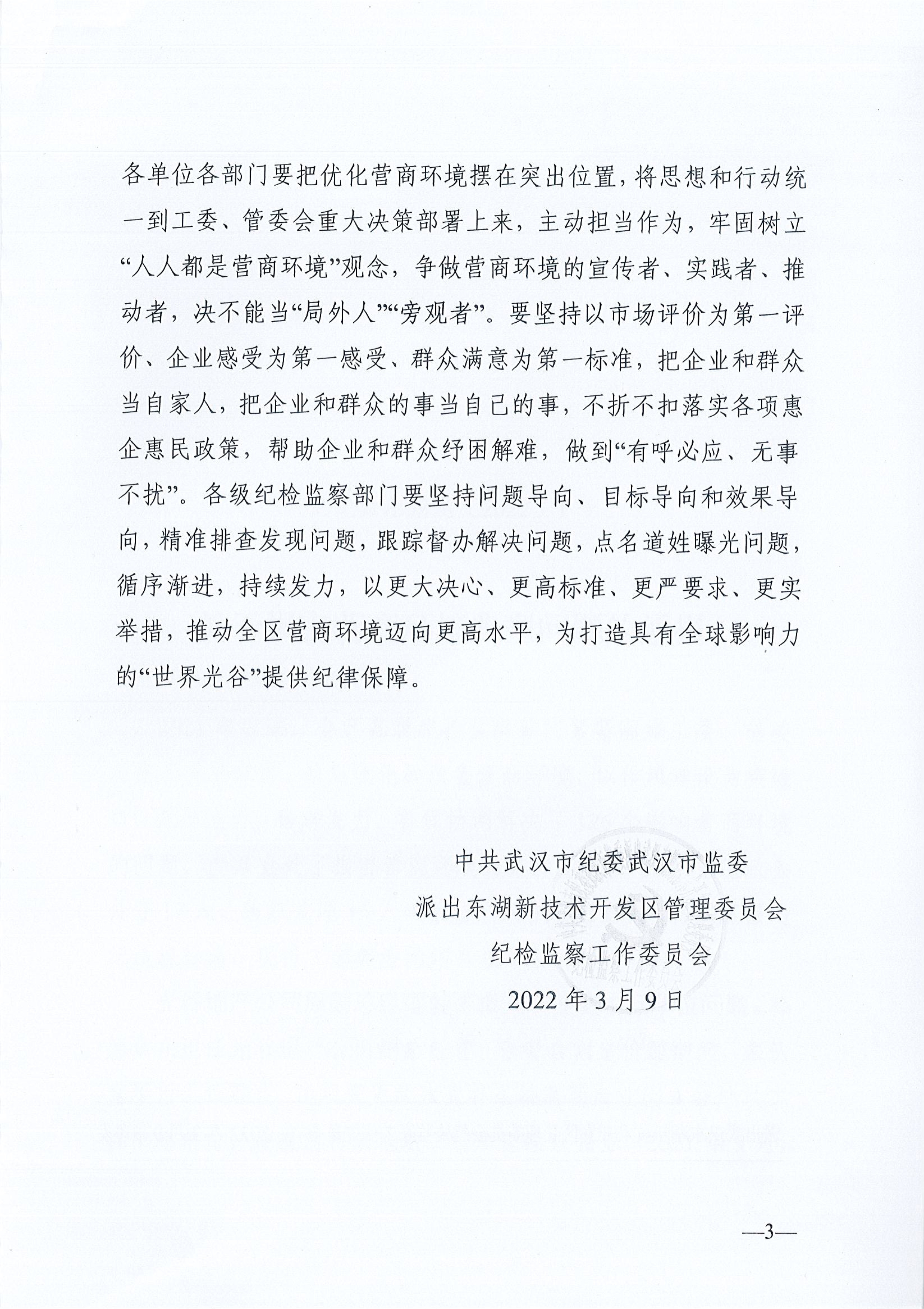 派出東湖高新區紀檢監察工委關于損害營商環境典型問題的通報